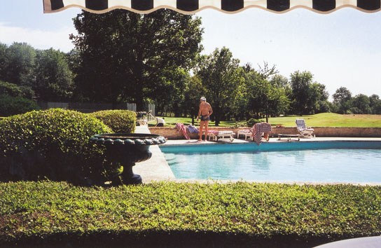 An outdoor heated swimming pool lies between the principal residence and the pool house. Located east of the main house is "La Petite Maison" which provides accommodations for the staff. Two tennis courts are located to the south of the pool.