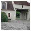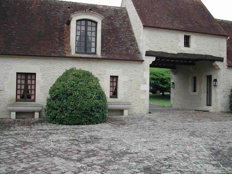 A gravel drive provides access to the farm and then on to the principal residence. The north wing includes a broad carriage entrance which provides access to the courtyard.