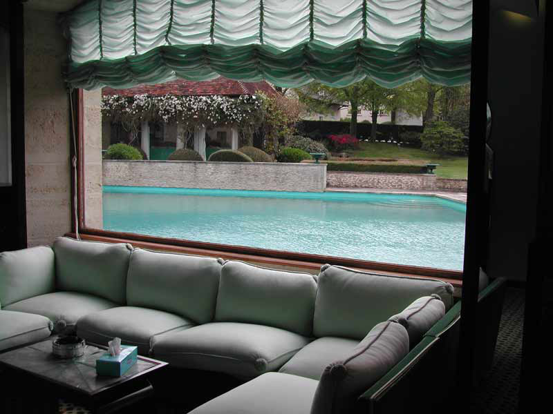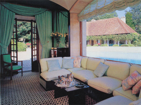 An outdoor heated swimming pool lies between the principal residence and the pool house. Located east of the main house is "La Petite Maison" which provides accommodations for the staff. Two tennis courts are located to the south of the pool.
