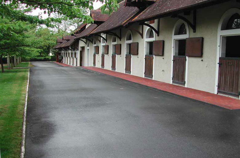 The Farm and stud buildings are reached by the gravel drive and includes a farmhouse. The house (not pictured) is divided into four 2-bedroom apartments for staff. There is also a cattle building which can house up to 60 animals, a barn which contains six bays and eight loose boxes.